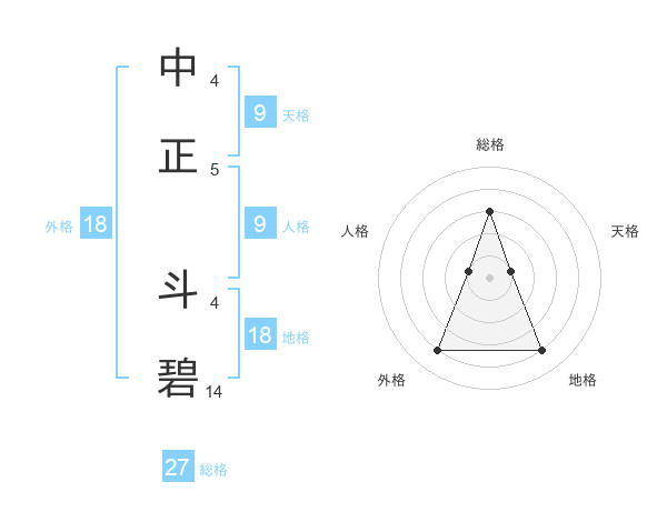 中正 斗碧さんの総格は27画の3点!