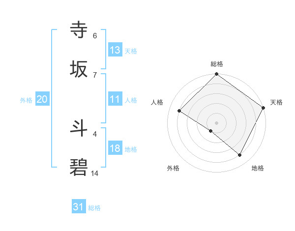 寺坂 斗碧さんを姓名の画数から五運を鑑定