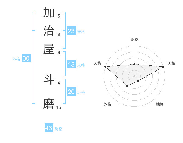 加治屋 斗磨さんの天格は23画の5点