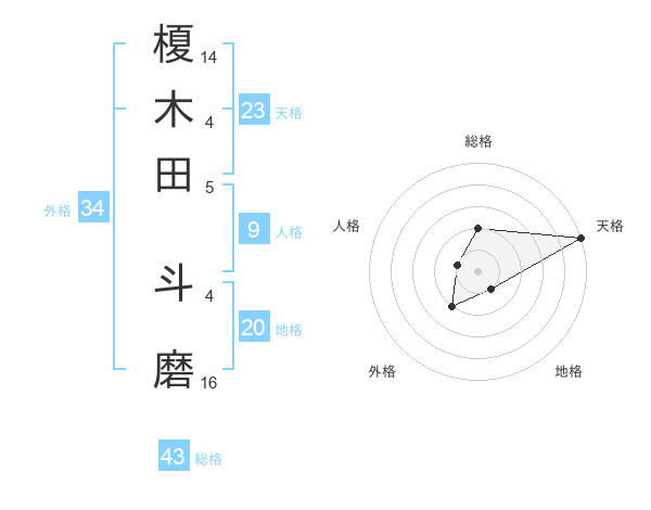 榎木田 斗磨さんの総格は43画の2点