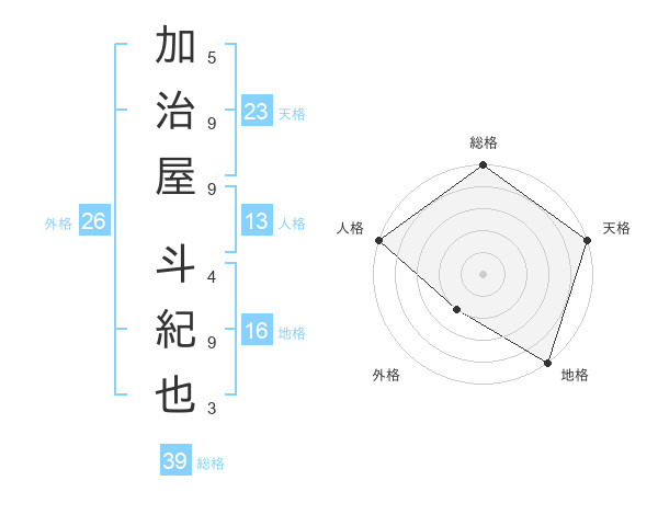 加治屋 斗紀也さんの天格は23画の5点!