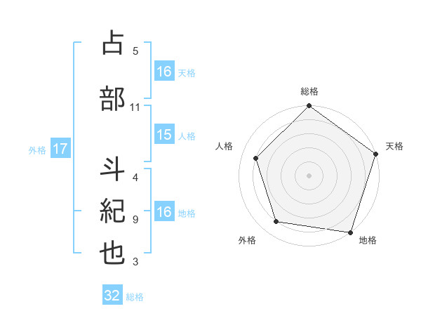 占部 斗紀也さんを姓名の画数から五運を鑑定