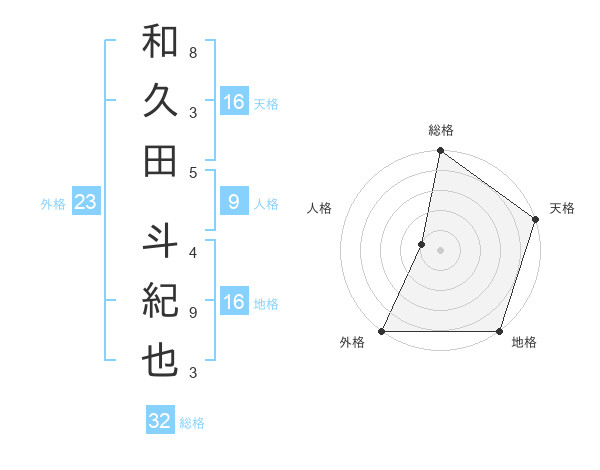 和久田 斗紀也さんを姓名の画数から五運を鑑定