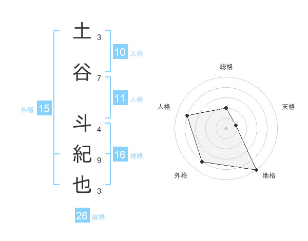 土谷 斗紀也さんを姓名の画数から五運を鑑定