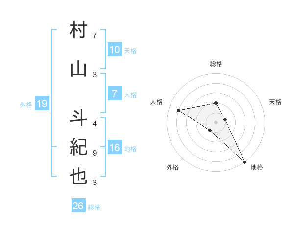 村山 斗紀也さんを姓名の画数から五運を鑑定