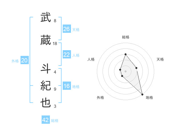 武蔵 斗紀也さんを姓名の画数から五運を鑑定