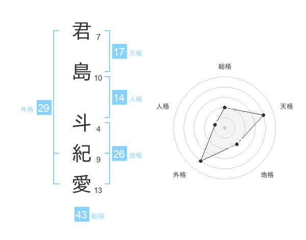 君島 斗紀愛さんを姓名の画数から五運を鑑定