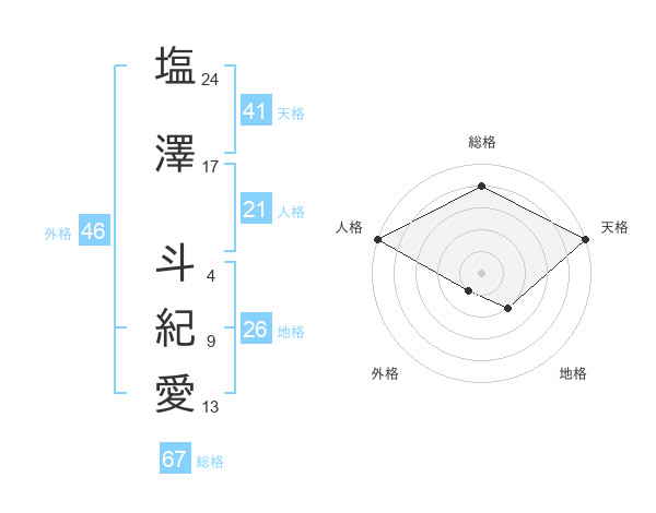 塩澤 斗紀愛さんを姓名の画数から五運を鑑定