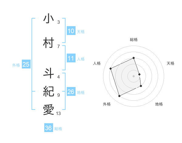 小村 斗紀愛さんを姓名の画数から五運を鑑定