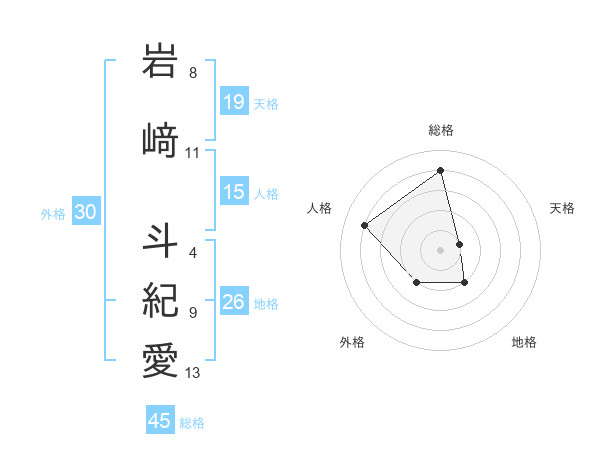 岩﨑 斗紀愛さんの総格は45画の4点!