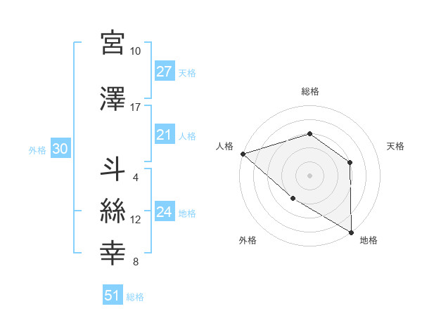 宮澤 斗絲幸さんの総格は51画の3点!