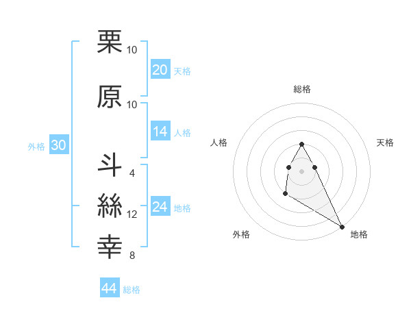 栗原 斗絲幸さんを姓名の画数から五運を鑑定