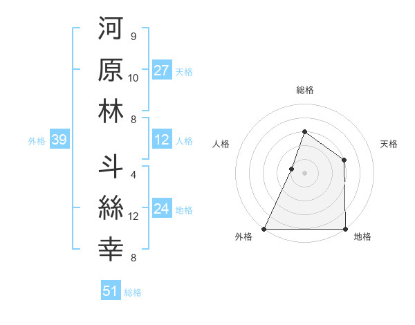 河原林 斗絲幸さんを姓名の画数から五運を鑑定