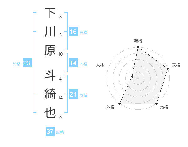下川原 斗綺也さんを姓名の画数から五運を鑑定