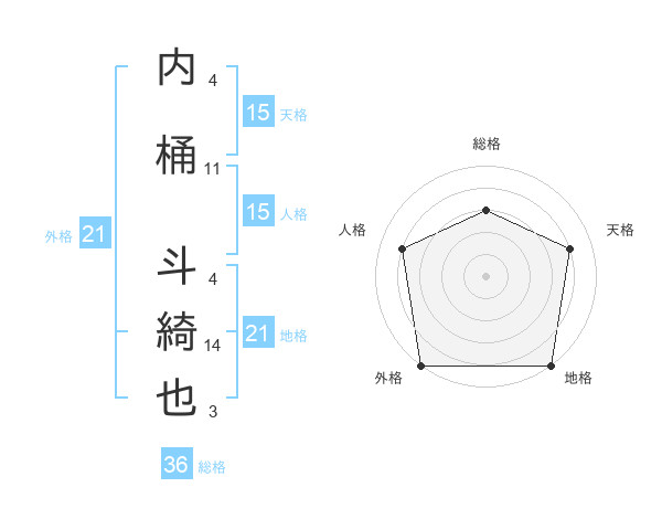 内桶 斗綺也さんを姓名の画数から五運を鑑定