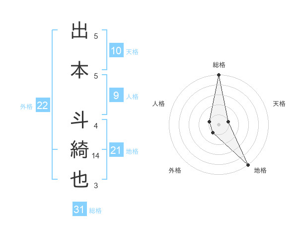 出本 斗綺也さんを姓名の画数から五運を鑑定