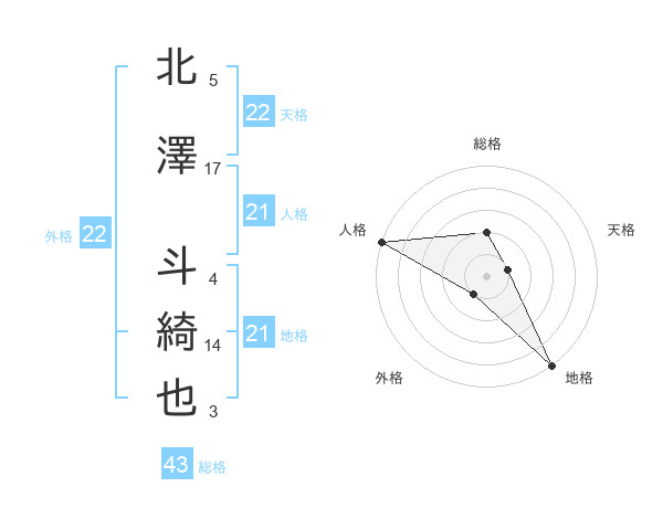 北澤 斗綺也さんを姓名の画数から五運を鑑定