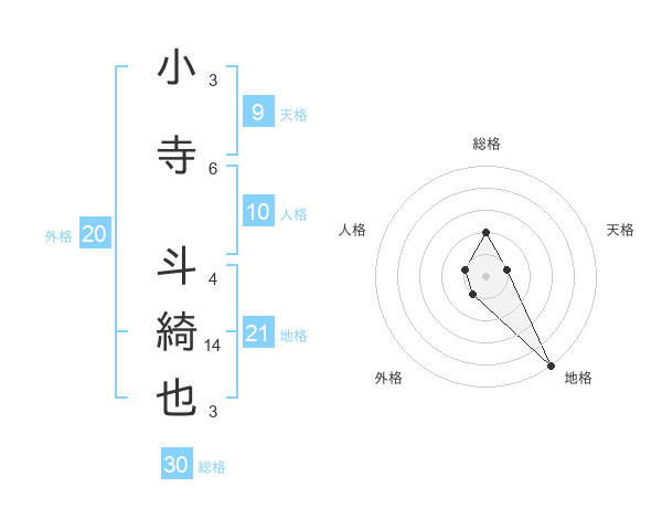 小寺 斗綺也さんの総格は30画の2点!