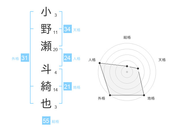 小野瀬 斗綺也さんを姓名の画数から五運を鑑定