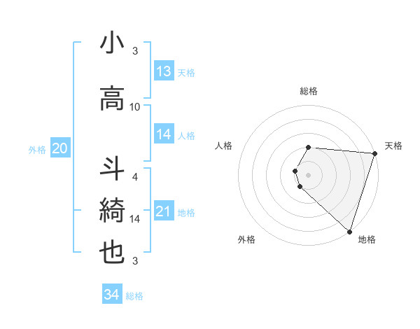 小高 斗綺也さんを姓名の画数から五運を鑑定
