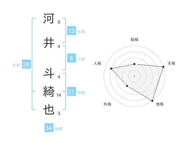 河井 斗綺也さんを姓名の画数から五運を鑑定
