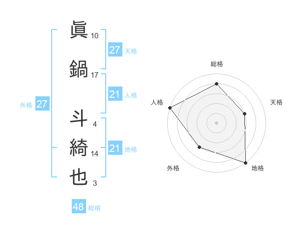 眞鍋 斗綺也さんを姓名の画数から五運を鑑定