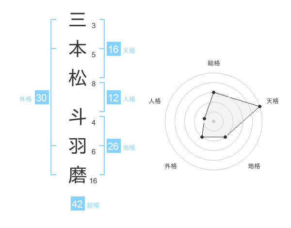 三本松 斗羽磨さんを姓名の画数から五運を鑑定