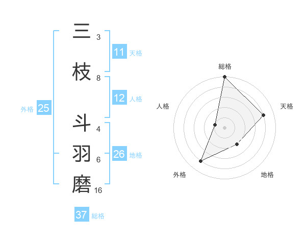三枝 斗羽磨さんを姓名の画数から五運を鑑定