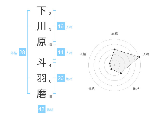下川原 斗羽磨さんを姓名の画数から五運を鑑定
