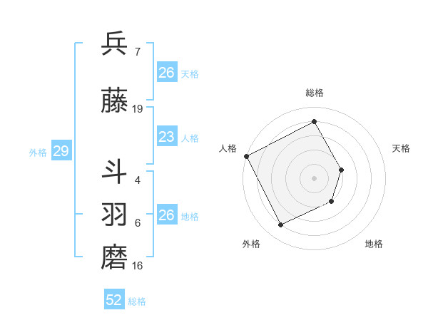 兵藤 斗羽磨さんの天格は26画の2点
