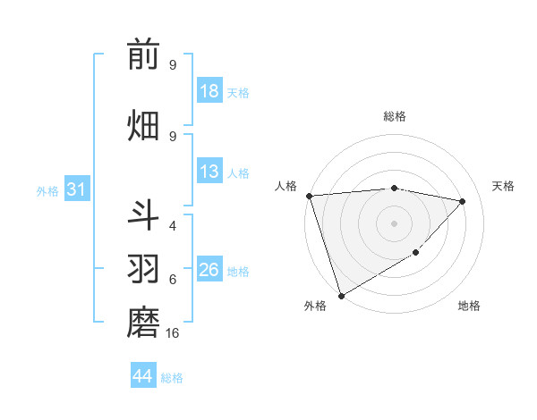 前畑 斗羽磨さんを姓名の画数から五運を鑑定