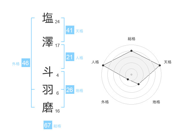塩澤 斗羽磨さんを姓名の画数から五運を鑑定