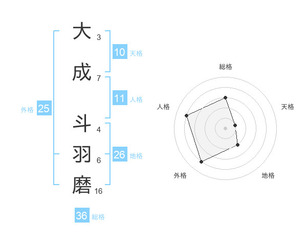 大成 斗羽磨さんを姓名の画数から五運を鑑定