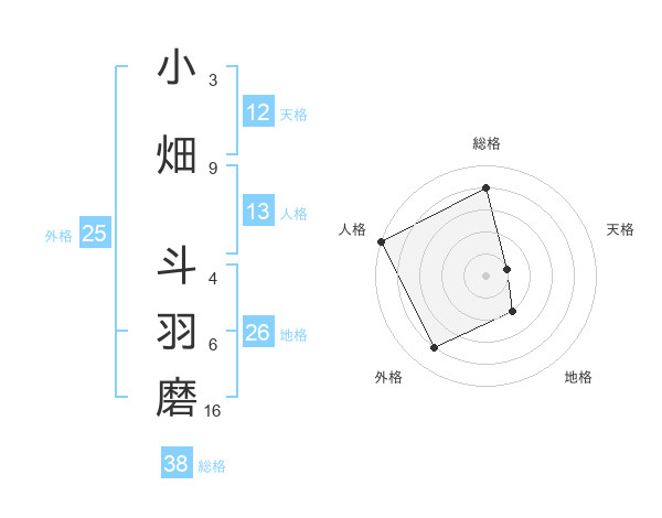 小畑 斗羽磨さんを姓名の画数から五運を鑑定