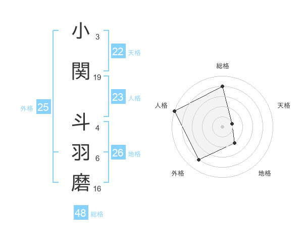 小関 斗羽磨さんを姓名の画数から五運を鑑定