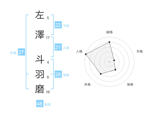 左澤 斗羽磨さんを姓名の画数から五運を鑑定