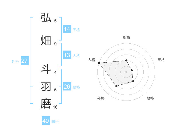 弘畑 斗羽磨さんを姓名の画数から五運を鑑定