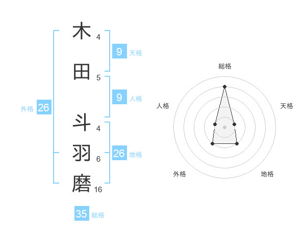 木田 斗羽磨さんを姓名の画数から五運を鑑定