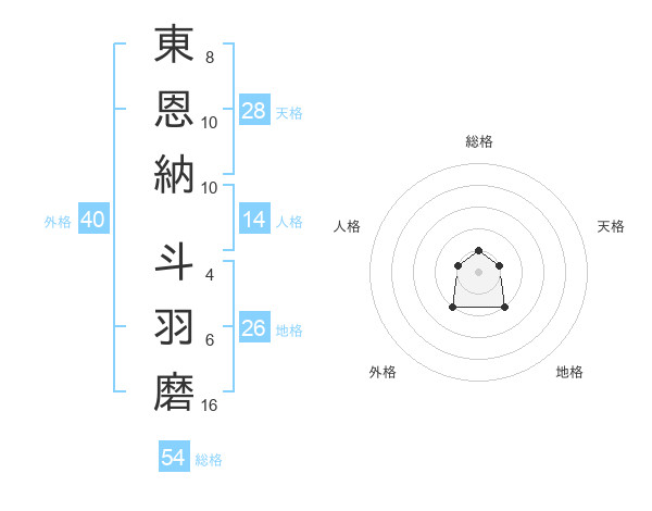 東恩納 斗羽磨さんを姓名の画数から五運を鑑定