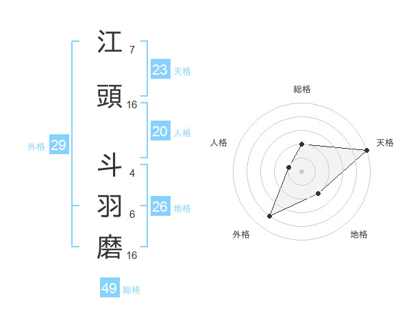 江頭 斗羽磨さんを姓名の画数から五運を鑑定