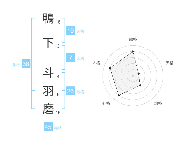 鴨下 斗羽磨さんを姓名の画数から五運を鑑定