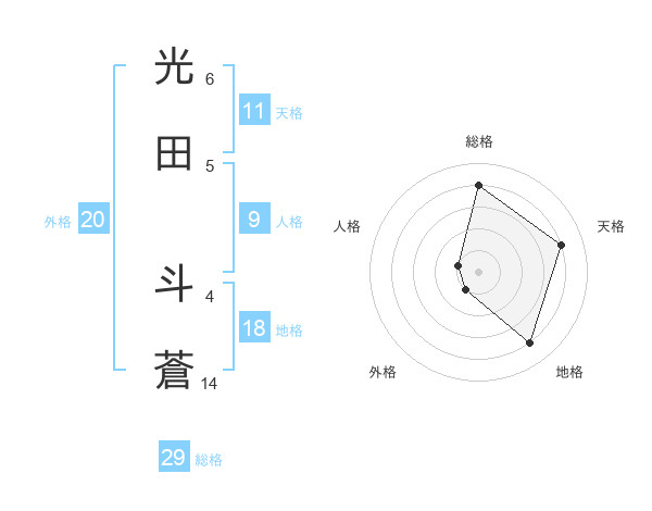 光田 斗蒼さんを姓名の画数から五運を鑑定