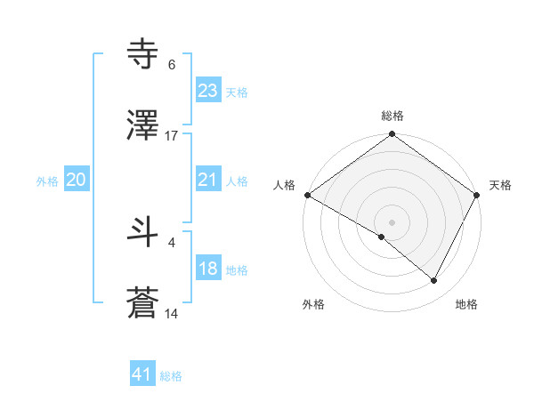 寺澤 斗蒼さんの天格は23画の5点!
