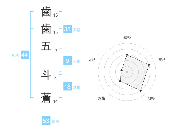 歯歯五 斗蒼さんの総格は53画の3点!