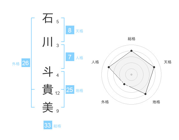 石川 斗貴美さんを姓名の画数から五運を鑑定