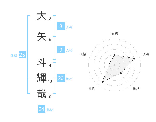 大矢 斗輝哉さんを姓名の画数から五運を鑑定