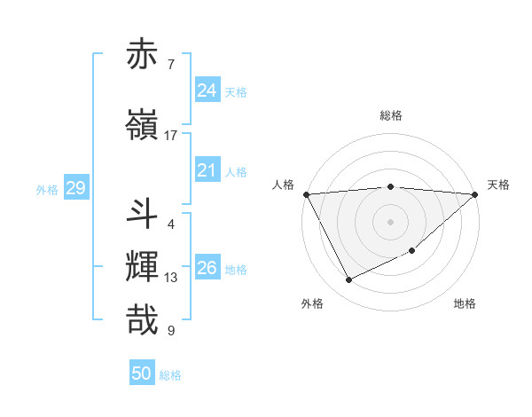 赤嶺 斗輝哉さんの天格は24画の5点!
