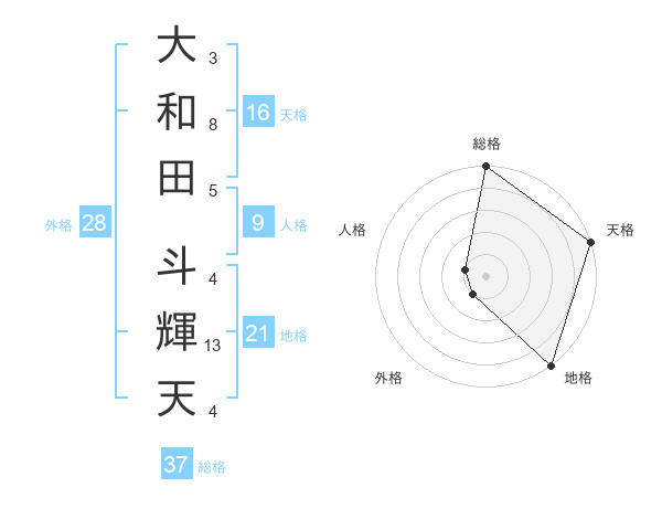 大和田 斗輝天さんの総格は37画の5点!