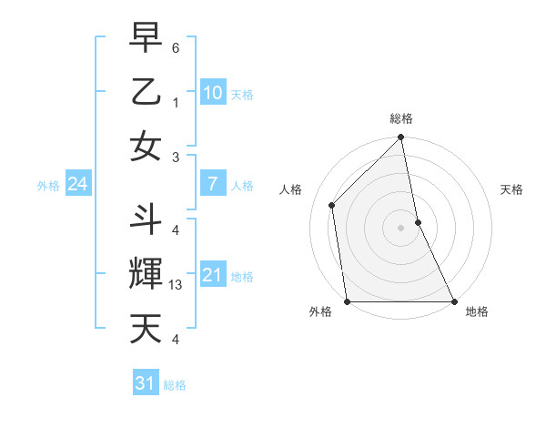 早乙女 斗輝天さんの総格は31画の5点!