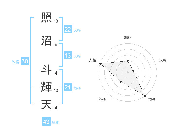 照沼 斗輝天さんを姓名の画数から五運を鑑定
